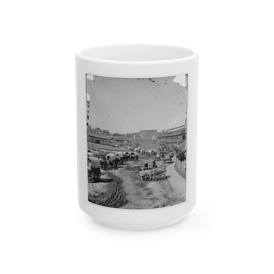 Atlanta, Georgia. Federal Army Wagons Railroad Depot (U.S. Civil War) White Coffee Mug