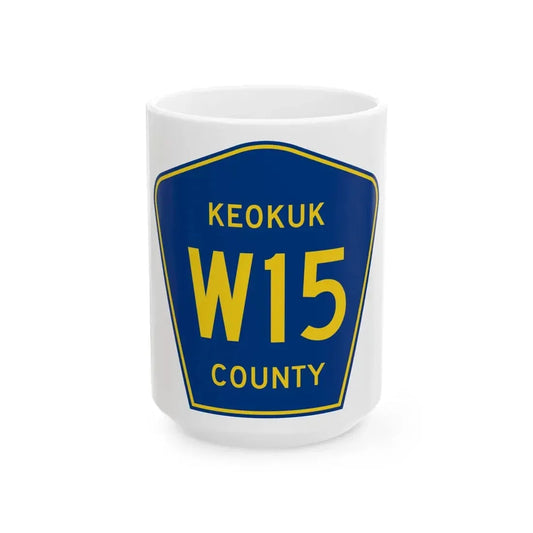 Keokuk County Route W15 IA (Iowa) (Road Sign) White Coffee Mug