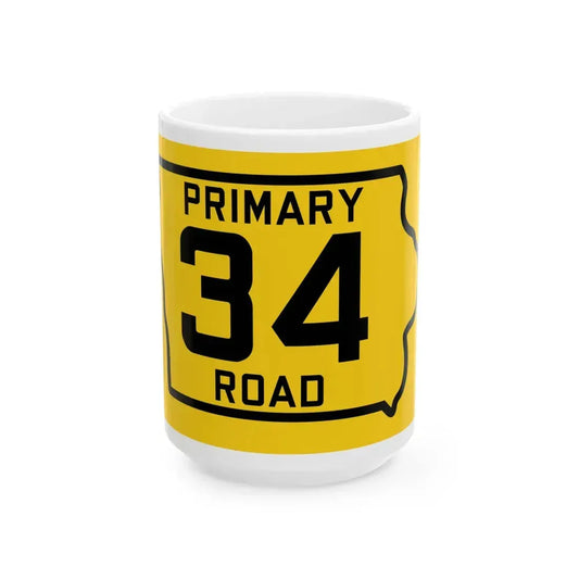 Iowa Primary 34 (Iowa) (Road Sign) White Coffee Mug