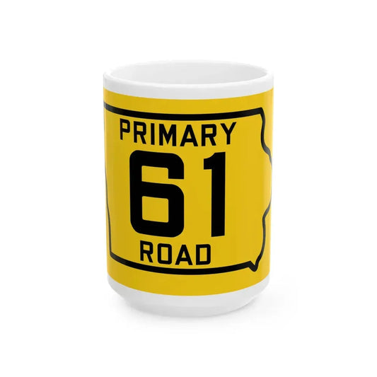 Iowa Primary 61 (Iowa) (Road Sign) White Coffee Mug