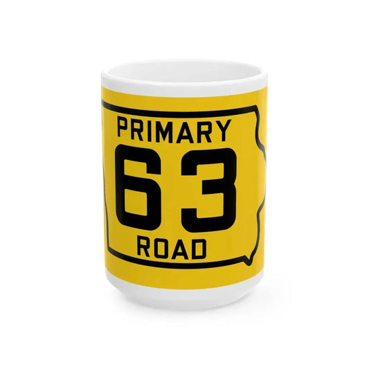 Iowa Primary 63 (Iowa) (Road Sign) White Coffee Mug