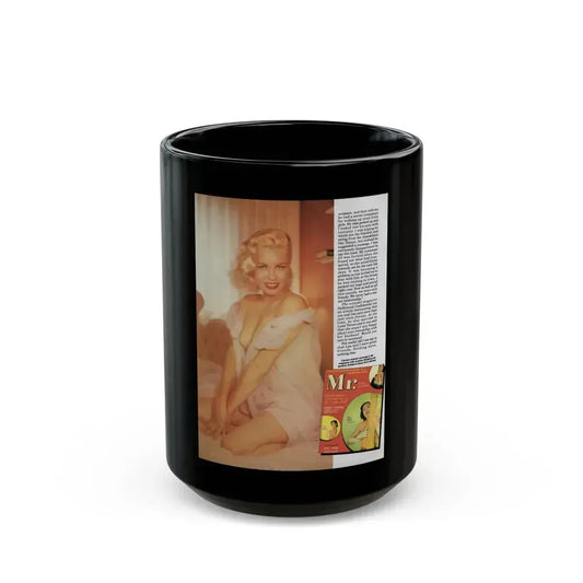 Jeanne Carmen #162 - Pages 18 & 19 Pages 1+2 of 4 with, 2 Page B&W Centerfold & 2 Small B&W Pics from Mr. Mag. Aug. '59 (Vintage Female Icon) Black Coffee Mug