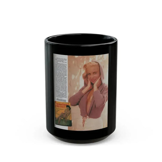 Jeanne Carmen #213 - Pages 48 & 49 Pages 4 & 5 of 5+2 Color Photos & 2 B&W Photos and end of article from Rogue Mag. June '59 (Vintage Female Icon) Black Coffee Mug