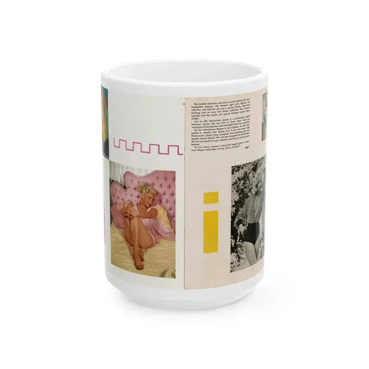 Jeanne Carmen #162 - Pages 18 & 19 Pages 1+2 of 4 with, 2 Page B&W Centerfold & 2 Small B&W Pics from Mr. Mag. Aug. '59 (Vintage Female Icon) White Coffee Mug