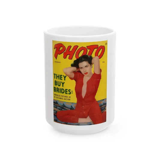 Jeanne Carmen #186 - Jeanne on Front Cover in Color & inside sperad on PHOTO Digest Mag. Aug. '54 (Vintage Female Icon) White Coffee MugRegular price From $15.95 USDRegular priceUnit price / per-