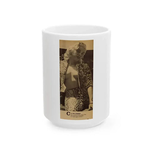 Jeanne Carmen #209 - Pages 1 of 1 with, 1 Medium B&W Photo & Caption from Glance Mag. April '59 (Vintage Female Icon) White Coffee MugRegular price From $15.95 USDRegular priceUnit price / per-