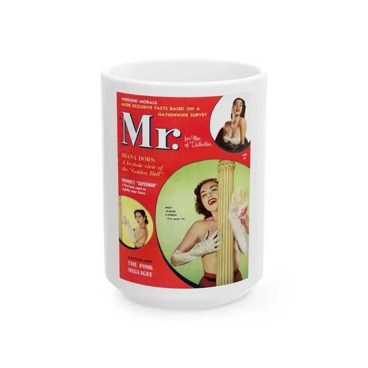 Jeanne Carmen #161 - Jeanne on Front Cover in Color & inside spread from Mr. Magazine Aug. '59 & inside spread (Vintage Female Icon) White Coffee MugRegular price From $15.95 USDRegular priceUnit price / per-