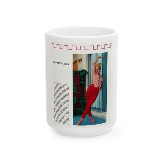Jeanne Carmen #131 - Pages 1 & 2 of 2 with, 3 B&W Photos from TAB Digest Mag. Sept. '54 (Vintage Female Icon) White Coffee MugRegular price From $15.95 USDRegular priceUnit price / per-