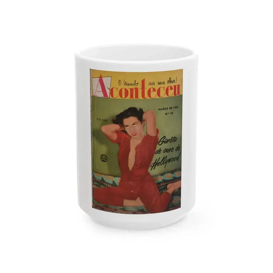 Jeanne Carmen #217 - Jeanne on Front Cover in Color of Aconteceu MARCO DE 1955 Brazilian Digest Sized Mag. (Vintage Female Icon) White Coffee MugRegular price From $15.95 USDRegular priceUnit price / per-