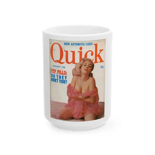 Jeanne Carmen #69 - Jeanne on Front Cover of Quick Pocket Mag. Jan. '58 - Jeanne on Cover in Color (Vintage Female Icon) White Coffee MugRegular price From $15.95 USDRegular priceUnit price / per-