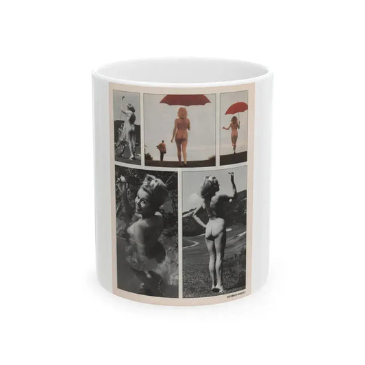 Jeanne Carmen #148 - Celebrity Sleuth Magazine Article & 5 Nude B&W+Color Photos on Page 7 (Vintage Female Icon) White Coffee Mug