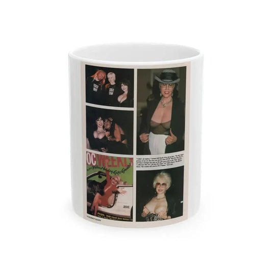 Jeanne Carmen #150 - Celebrity Sleuth Magazine Article & 1 Color Topless Photo & 2 more Color on Page 9 (Vintage Female Icon) White Coffee Mug