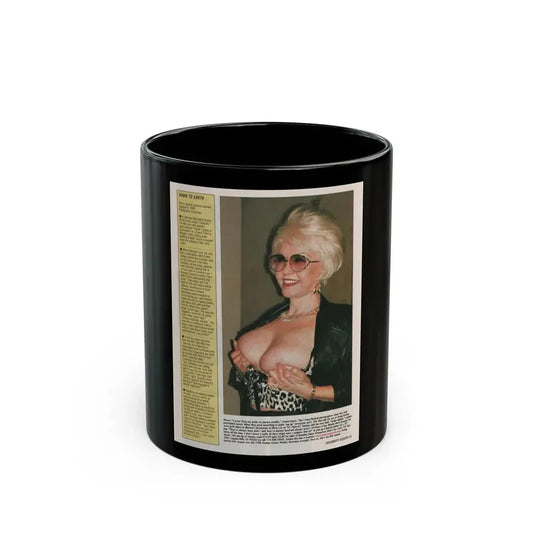Jeanne Carmen #154 - Celebrity Sleuth Magazine Article & 1 Topless Color Photo on Page 15 (Vintage Female Icon) Black Coffee Mug