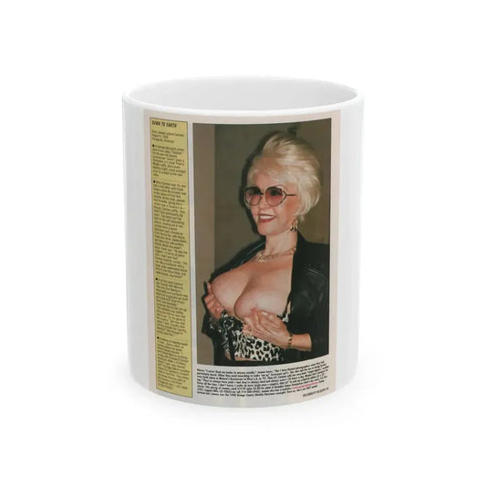 Jeanne Carmen #154 - Celebrity Sleuth Magazine Article & 1 Topless Color Photo on Page 15 (Vintage Female Icon) White Coffee Mug