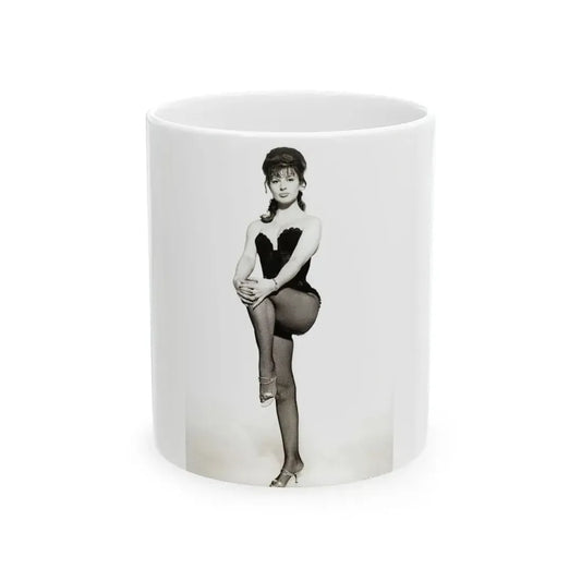 Jennifer Jayne #01 - B&W 7x9 Full Body Lingerie & Fishnet Stockings & open heels Photo (Vintage Female Icon) White Coffee Mug