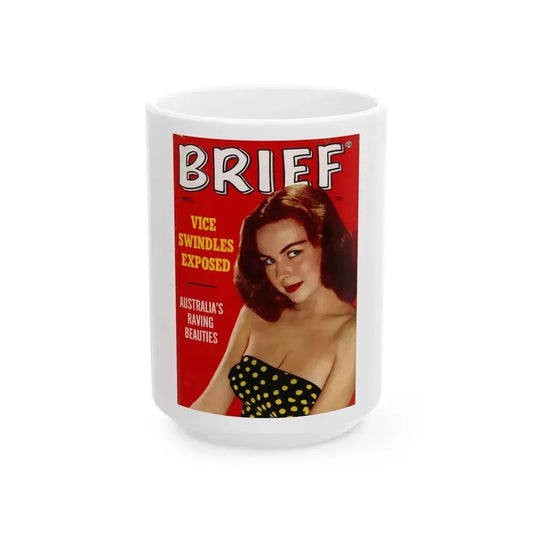 Joi Lansing #168 - Joi on Cover in Color as a natural brunette from BRIEF Digest Mag. Dec. '54 (Vintage Female Icon) White Coffee Mug