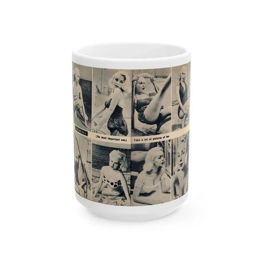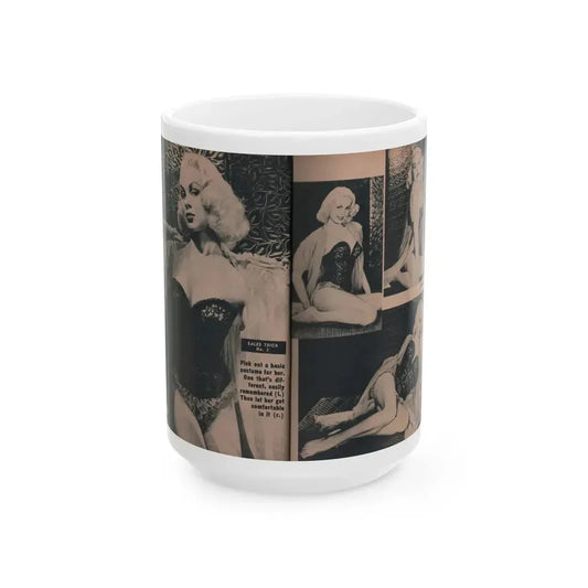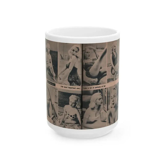 Joi Lansing #210 - 2 Pages, 8 B&W Photos & 2 Captions from EYE Digest Mag. June '55 (Vintage Female Icon) White Coffee Mug