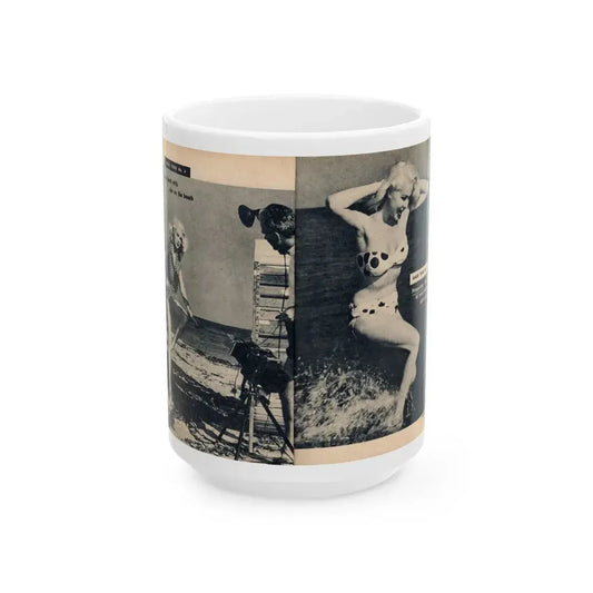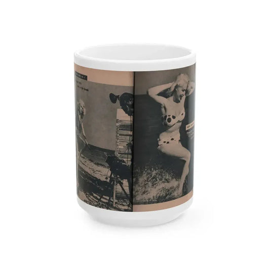 Joi Lansing #206 - 1 Page, 1 B&W Centerfold Photo & Short Article from EYE Digest Mag. June '55 (Vintage Female Icon) White Coffee Mug