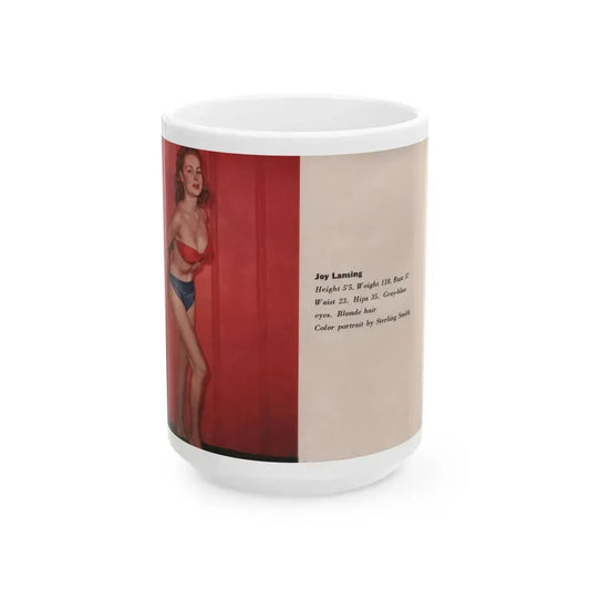 Joi Lansing #214 - 1 Color Pin-Up Photo & Statistics from Photoplay Pin-Ups Magazine Issue #05 (Vintage Female Icon) White Coffee Mug