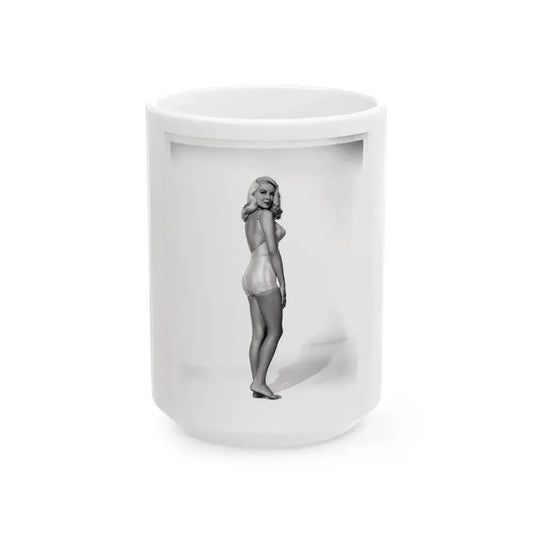 Joi Lansing #42 - 8x10 B&W Full Body 2-Piece Swimsuit Cheesecake Photo (Vintage Female Icon) White Coffee Mug