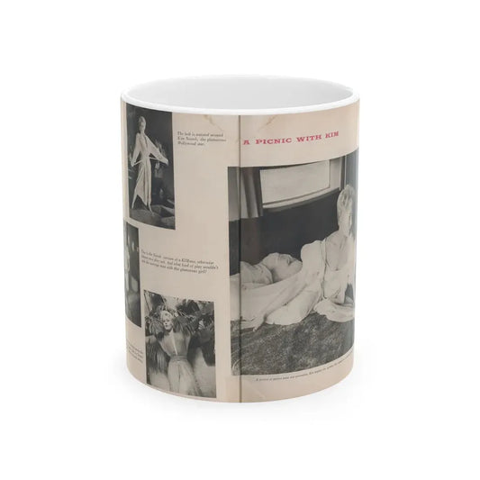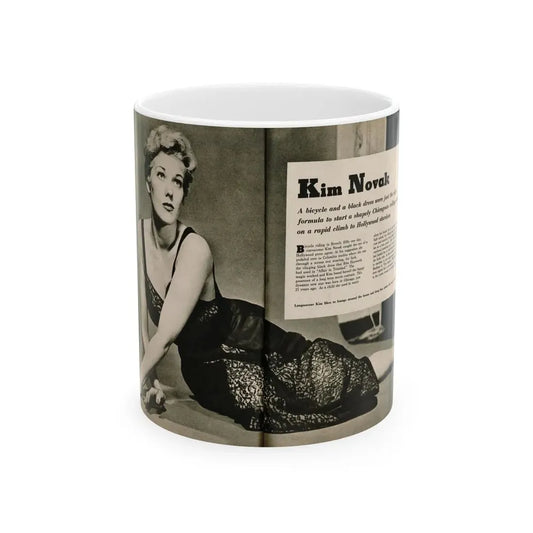 Kim Novak #394 - Pages 1 & 2 of 4 with, 1 Color Full Page Glamour Photo plus 1 Full Page B&W Photo & Article from Jem Mag. Vol. 1 #01 Nov. '56 (Vintage Female Icon) White Coffee Mug