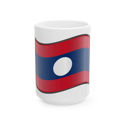 Laos Flag - iconic waving (Laos) White Coffee Mug