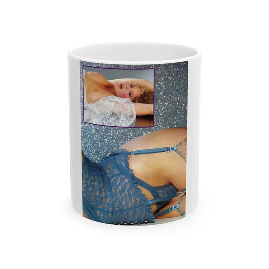 Linda Blair #325 - 1 Page, 1 Photo topless part of centerfold & 1 small topless upper left hand corner from OUI Mag. October '82 (Vintage Female Icon) White Coffee Mug