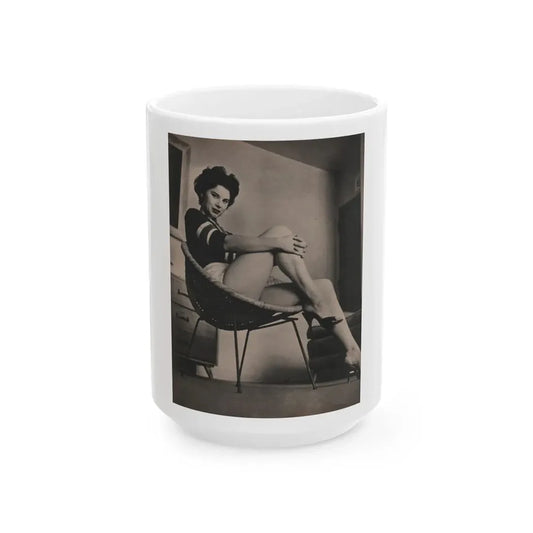 Lisa Montell #20 - International Pin-Ups Mag. '57 - 2 B&W Photos & Small Article (Vintage Female Icon) White Coffee Mug