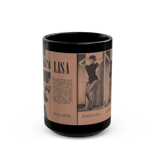 Lisa Montell #20 - International Pin-Ups Mag. '57 - 2 B&W Photos & Small Article (Vintage Female Icon) Black Coffee Mug