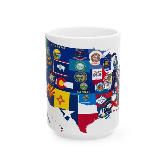 Flag-map of the 50 states of the United States (United States) White Coffee Mug