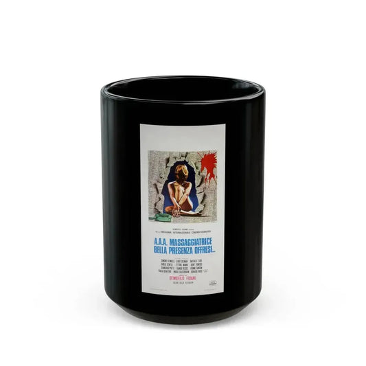 A.A.A. MASSEUSE, GOOD-LOOKING, OFFERS HER SERVICES 1972 Movie Poster - Black Coffee Mug