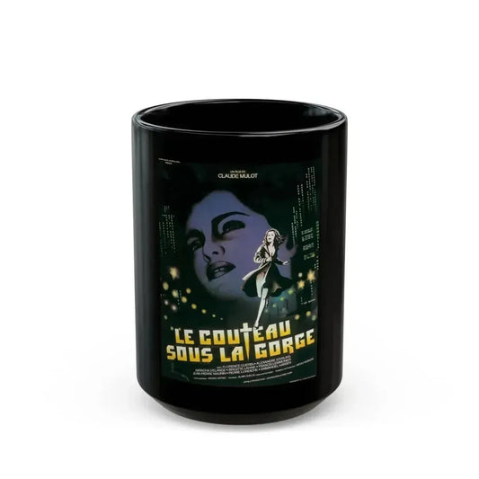A KNIFE UNDER THE THROAT 1986 Movie Poster - Black Coffee Mug