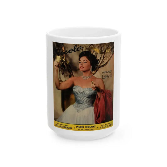 Barbara Darrow #45 - Barb on front cover in Color Glamour Photo from Piccolo Dutch Movie Star Mag. 12-19-1954 (Vintage Female Icon) White Coffee Mug