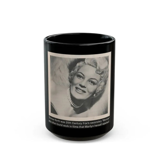 Sheree North #341 - 3x5 Small B&W Glamour Portriat Clipping with, Caption from 1950's Movie Star Magazine (Vintage Female Icon) Black Coffee Mug