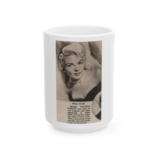 Sheree North #343 - 1 8x10 Page of B&W Glamour Photo with, Short Article from Movie Star Magazine Circa 1950's1 (Vintage Female Icon) White Coffee Mug