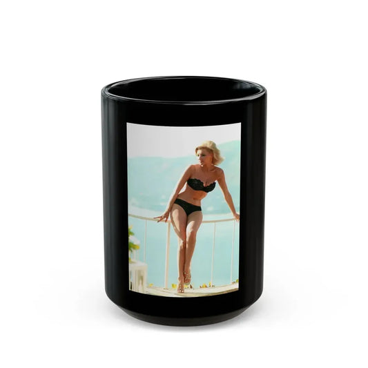 Nancy Kovack #100 - x Full Body Color Re-Print Photo in 2-Piece Black Bikini Cheesecake Pin-Up as a Blonde (Vintage Female Icon) Black Coffee Mug