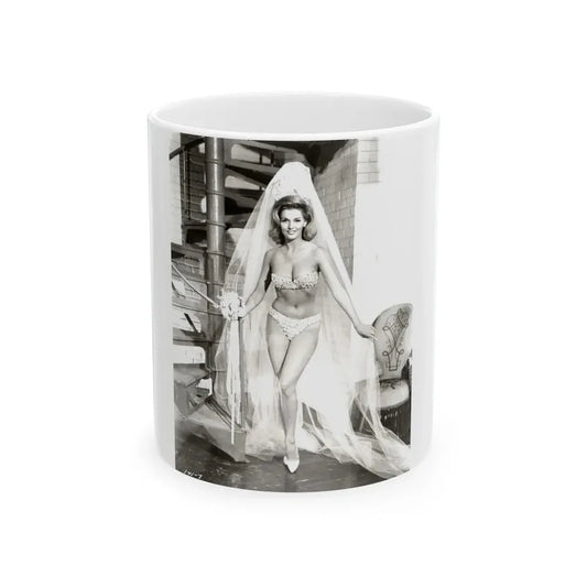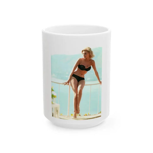 Nancy Kovack #100 - x Full Body Color Re-Print Photo in 2-Piece Black Bikini Cheesecake Pin-Up as a Blonde (Vintage Female Icon) White Coffee Mug