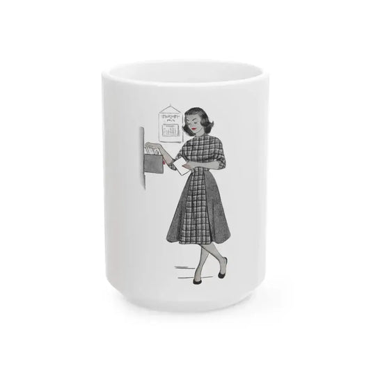 1951 illustration 1 For a dress pattern article in Woman magazine - White Coffee Mug