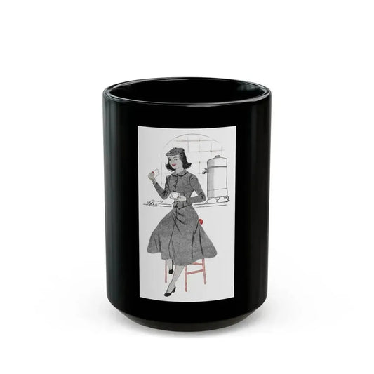 1951 illustration 2 For a dress pattern article in Woman magazine - Black Coffee Mug