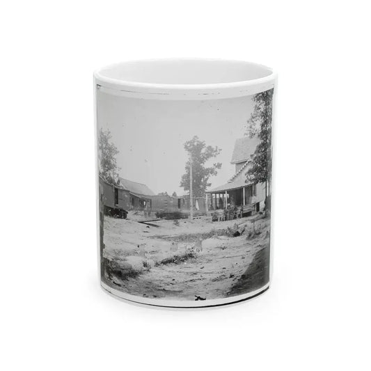 Catlett's Station, Va. The Station With U.S. Military Railroad Boxcars And Soldiers (U.S. Civil War) White Coffee Mug