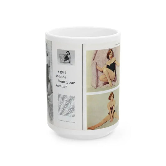 Dawn Richard #39 - [Pages 26 & 27] Including Pages 5 & 6 of 6 with, 2 Full Page Color Photos of Dawn from Bachelor Mag. Nov. '57 (Vintage Female Icon) White Coffee Mug