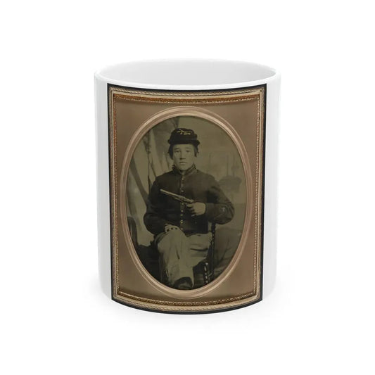 David Potts In Union Cavalry Uniform, With Revolver, In Front Of Painted Background (U.S. Civil War) White Coffee Mug