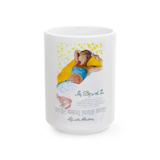 Elizabeth Arden advt, Stay Pretty in the Sun, 1947 - White Coffee Mug