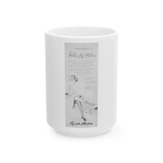 Elizabeth Arden advt, Velva Leg Film, 1944 - White Coffee Mug