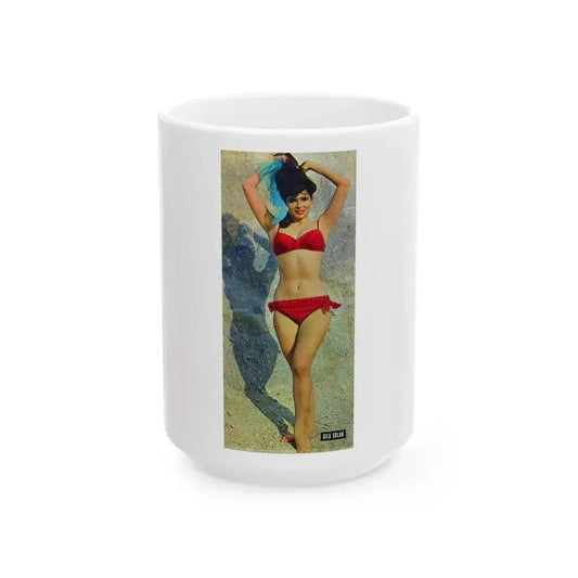Gila Golan #164 - 7x10 Japanese Color Pin-Up Photo 1966 from Mag. Page (Vintage Female Icon) White Coffee Mug