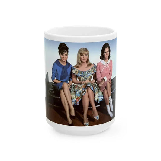 Gila Golan #123 - Gila with Leslie Parrish & 1 other Three On A Couch '66 Promo Photo (Vintage Female Icon) White Coffee Mug