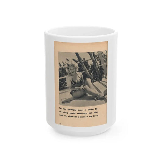 Lee Wilson #22 - Pages 3 & 4 of 5 Featuring, Lee+3 B&W Photos & Caption from EYE Digest Mag. Nov. '54 (Vintage Female Icon) White Coffee Mug