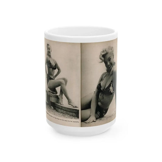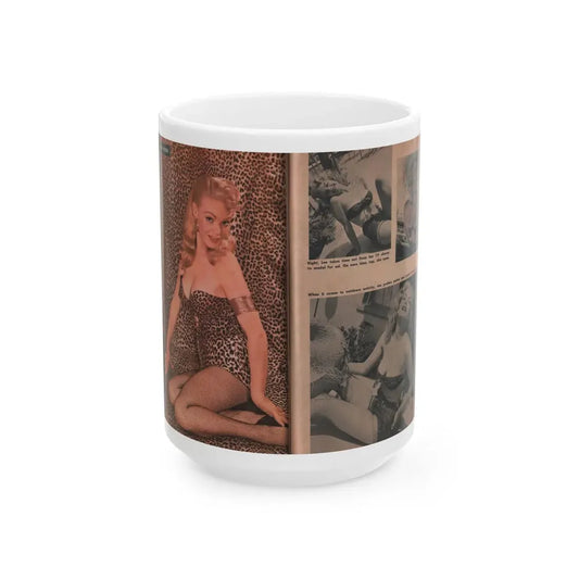 Lee Wilson #17 - Pages 3 of 3 Featuring, Lee 2 B&W Photos & Caption from TAB Digest Mag. February '58 (Vintage Female Icon) White Coffee Mug
