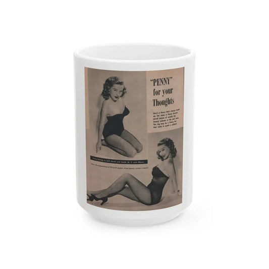 Penny Duncan #27 - [Pages ] Pages 1 of 2 with, Penny+1 B&W Photo from Bachelor Pin-Ups Mag. Issue #01 '57 (Vintage Female Icon) White Coffee Mug