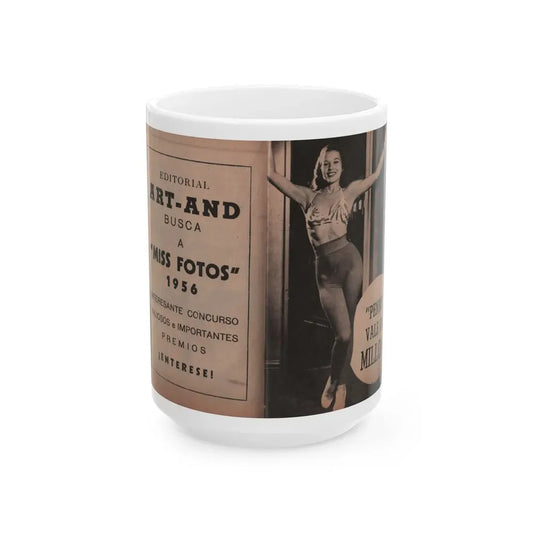 Penny Duncan #15 - [Pages 110 & 111] Pages 5 & 6 of of 6 with, Penny+2 B&W Photos, Caption & Brief Article from EYE Digest Mag. April '56 (Vintage Female Icon) White Coffee Mug